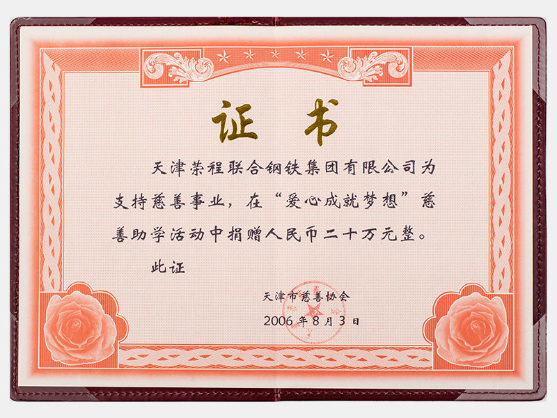 在“愛心成就夢想”慈善助學(xué)活動中捐贈人民幣二十萬元整
